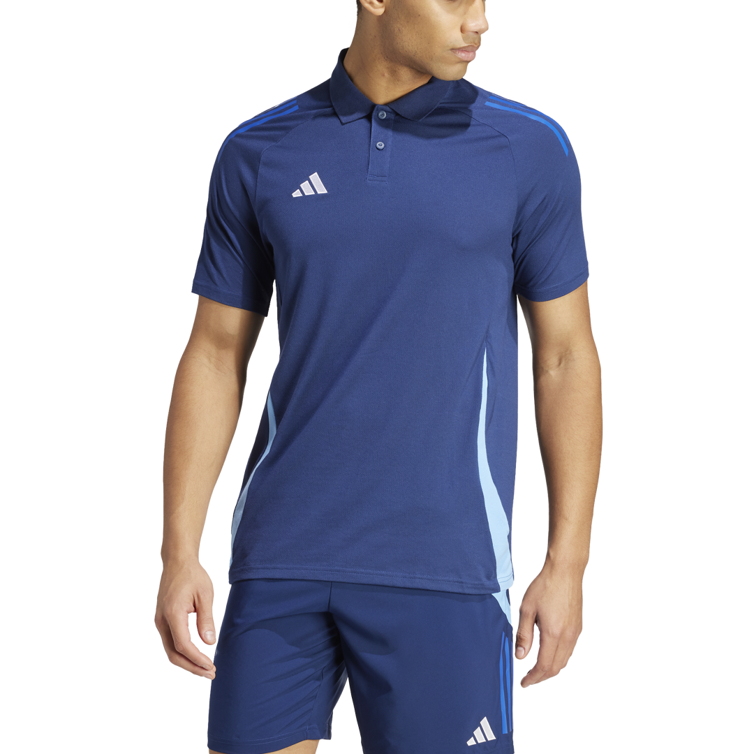 Elegante y actual, este polo adidas forma parte de la colección Tiro 24 Competition y es perfecto para animar a tu equipo desde la banda. Se ha confeccionado en un tejido de punto muy suave y cómodo que te ayuda a recuperarte después de las sesiones de entrenamiento más intensas. El logotipo de las 3 bandas bordado en el pecho refleja tu pasión por el fútbol.