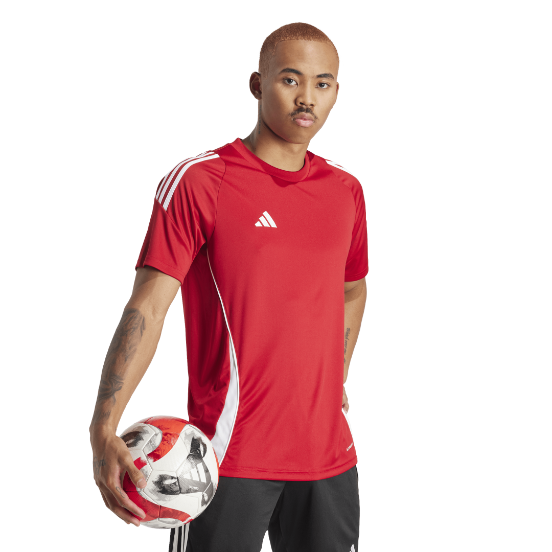 Jersey Tiro 24 adidas de fútbol, para hombre, color rojo. Jersey manga corta. 100% Poliéster Reciclado. Item: IS1016